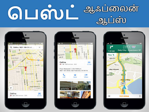 நகரங்கள், சிற்றூர்கள் முழுவதும், ஒரு புள்ளியில் இருந்து மற்றொரு புள்ளிக்கு நகர மிக அதிகமாக பயன்படுத்தப்படும் ஒரு ஆப் தான் கூகுள் மேப்ஸ். ஆன்லைனில் சிறப்பான பயன்பாட்டை வழங்கும் இது ஆப்லைனிலும் நிகழ்நேர மேம்படுத்தல்களை வழங்கி சிறப்பாக வேலை செய்கிறது. உங்களால் இணைய இணைப்பு இல்லாமல் சர்ச் மற்றும் நேவிகேஷனை ஆஃப்லைன் மேப்ஸில் நிகழ்த்த முடியும். செட்டிங்ஸ் மேல்னுவில் உலா ஆஃப்லைன் ஏரியாஸ் டாப்-தனை லைகிளிக் செய்வதின் மூலம் நீங்கள் இணைய இணைப்பு இல்லாமல் முழு நகர வரைபடங்கள், கூகுள் பெஸ்ட் நேவிகேஷன் ஆகியவைகளை பயன்படுத்த முடியும்.