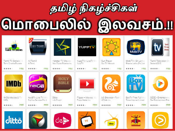 இங்கு தமிழ் தொலைகாட்சி நிகழச்சிகளை இலவசமாக மொபைலில் பார்த்து ரசிக்க வழி செய்யும் ஆண்ட்ராய்டு செயலிகளின் பட்டியலை தான் தொகுத்துள்ளோம்..