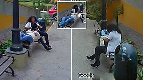 அவர் ஜூம் செய்து பார்த்த புகைப்படத்தில் ஒரு ஆண், நீல நிற ஜீன்ஸ் மற்றும் வெள்ளை சட்டை அணிந்து, கருப்பு மற்றும் வெள்ளை ஆடை உடுத்திய பெண்ணுடன் இருப்பதை கூகிள் ஸ்ட்ரீட் வியூ படம் காட்டியுள்ளது. அருகில் உள்ள பெஞ்சில் அந்த பெண்ணின் மடியில் இந்த ஆண் படுத்துக் கொண்டிருப்பதை காட்டியுள்ளது. திணறிப்போன கணவன் படத்தை இன்னும் ஜூம் செய்திருக்கிறார். மடியில் கிடந்த ஆணின் தலைமுடியை அந்தப் பெண் வருடிக்கொடுப்பதும் தெளிவாக தெரிந்துள்ளது.