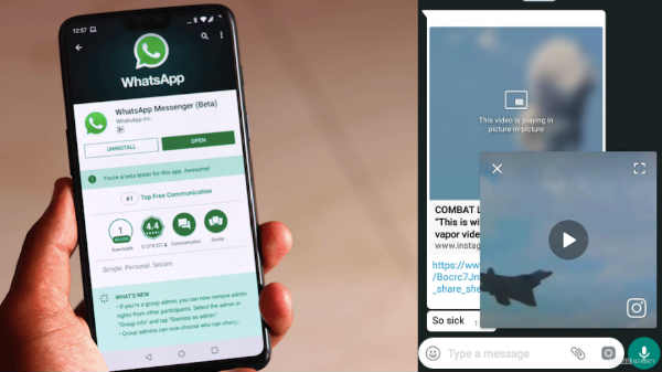 இந்த புதிய வாட்ஸ் ஆப் ஆண்ட்ராய்டு பீட்டா வெர்ஷன் 2.18.301 அப்டேட் இல் பிக்சர்-இன்-பிக்சர் மோடு சேவை அறிமுகம் செய்யப்பட்டுள்ளது. இதன் மூலம் இனிமேல் வாட்ஸ் ஆப் பயனர்கள், பேஸ்புக், இன்ஸ்டாகிராம், யூடூப் மற்றும் வீடியோஸ் என அனைத்தையும் வாட்ஸ் ஆப்-லேயே பயன்படுத்திக் கொள்ளலாம்.