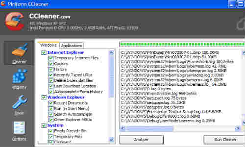 தற்காலிக இண்டர்நெட் பைல்கள், விண்டோஸ் சிஸ்டம் ஏற்படுத்தும் தற்காலிக பைல்கள், லாக் இன் சம்பந்தப்பட்ட பைல்கள், குக்கீஸ் என தற்காலிக பைல்களை அடுக்கிக் கொண்டு செல்லலாம். இவை எல்லாவற்றையும் தானாக சிகிளீனர் நீக்குகிறது.