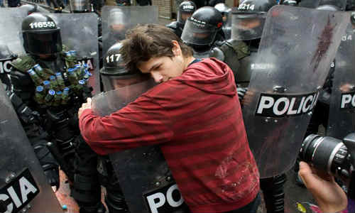 சண்டை வேண்டாமென்று போலீசாரின் மீது பூங்கொத்துகளை போடும் மனிதர்கள்
