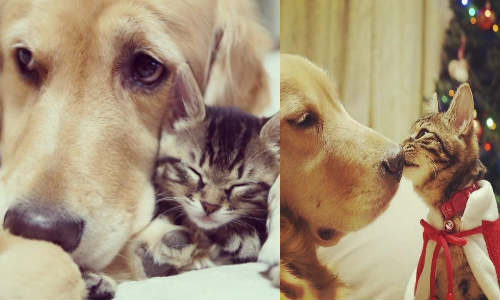 பூனையே பார்த்து கொள்ளும் நாய்