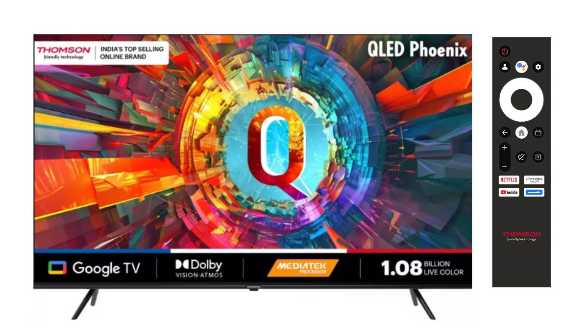 தாம்சன் பீனிக்ஸ் கியூஎல்இடி டிவி அம்சங்கள் (Thomson Phoenix QLED TV Specifications): இந்த டிவியில் 43 இன்ச் (3840 × 2160 பிக்சல்கள்) கியூஎல்இடி டிஸ்பிளே வருகிறது. 4K ரெசொலூஷன், 550 நிட்ஸ் பிரைட்னஸ், 1.1 பில்லியன் கலர், எச்டிஆர்10 பிளஸ் (HDR10+) மற்றும் எச்எல்ஜி (HLG) சப்போர்ட் கொண்டிருக்கிறது.