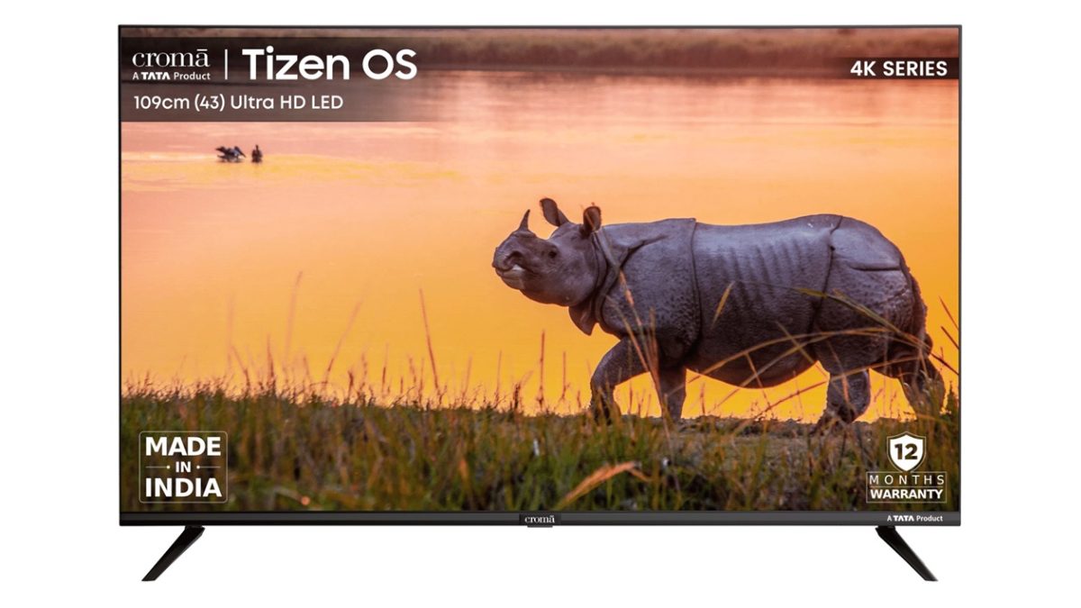 குரோமா டைசன் ஓஎஸ் டிவி அம்சங்கள் (Croma Tizen OS TV Specifications): இந்த குரோமா மாடலில் பெசல்-லெஸ் டிசைனுடன் ஏபிளஸ் (A+) கிரேடு பேனல் வருகிறது. டிஸ்பிளேவில் 4K (3840 x 2160 பிக்சல்கள்) ரெசொலூஷன் மற்றும் 60Hz ரெஃப்ரெஷ் ரேட் வருகிறது. இதுவொரு 300 நிட்ஸ் பிரைட்னஸ் கொண்ட எல்இடி (LED) டிஸ்பிளே மாடலாகும்.