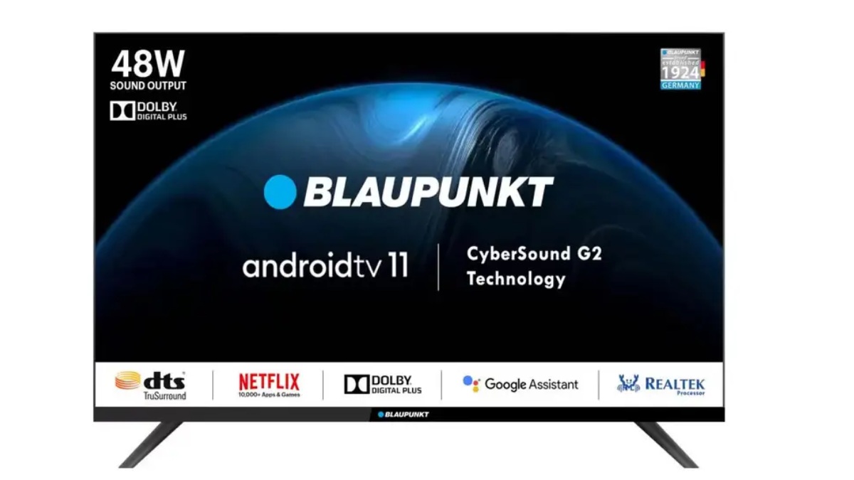ப்ளூபங்க்ட் சைபர்சவுண்ட் 43 இன்ச் டிவி அம்சங்கள் (Blaupunkt CyberSound 43 inch TV Specifications): ரியல்டெக் (Realtek) சிப்செட் மற்றும் ஆண்ட்ராய்டு 11 ஓஎஸ் (Android 11 OS) கிடைக்கிறது. ஃபுல்எச்டி (Full HD) ரெசொலூஷன் மற்றும் 500 நிட்ஸ் பீக் பிரைட்னஸ் கொடுக்கிறது. மேலும், 60Hz ரெஃப்ரெஷ் ரேட், எச்டிஆர் (HDR) விவிட் கலர்கள் உள்ளிட்ட பட்ஜெட்டுக்கு ஏற்ப பீச்சர்களை கொடுத்து இருக்கிறது.