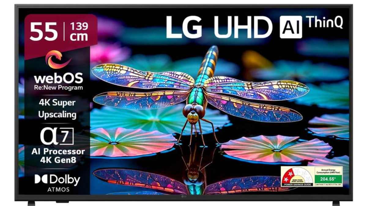 எல்ஜி ஏஐ டிவி 55 இன்ச் 4கே அம்சங்கள் (LG AI TV 55 inch 4K Specifications): 55 இன்ச் (3840 x 2160 பிக்சல்கள்) எல்இடி (LED) டிஸ்பிளே கிடைக்கிறது. அல்ட்சா எச்டி 4கே ரெசொலூஷன், 60 Hz ரெஃப்ரெஷ் ரேட் கிடைக்கிறது. மேலும், 4கே சூப்பர் அப்ஸ்கேலிங் (4K Super Upscaling), ஏஎல்எல்எம் (ALLM), விஆர்ஆர் (VRR) மற்றும் ஏஐ பிக்சர் ப்ரோ ( AI Picture Pro) கிடைக்கிறது.