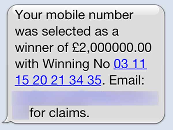 மற்றொரு மிகவும் பொதுவான மோசடி எஸ்எம்எஸ் ஆனது பரிசு பெற்றுளீர்கள் அல்லது ஜாக்பாட் கிடைத்துள்ளது என்பதுடன் சேர்த்து நீங்கள் அந்த பரிசினை பெற இங்கே கிளிக் செய்யவும் என்ற வடிவில் அனுப்பப்படும். அதுவும் மோசடியே..!