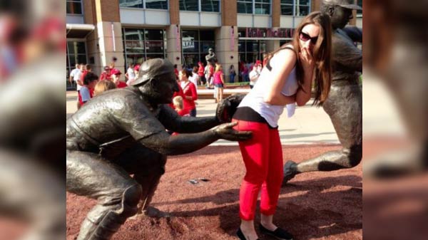 வர வர உங்க சேட்டை எல்லாம் அளவே இல்லாம போயிட்டு இருக்கு! சிலைகளுடன் குறும்பு!