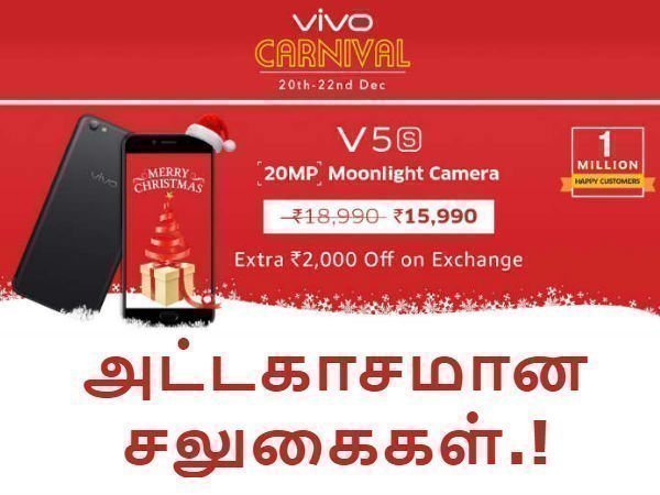 புக்மைஷோ வழியாக ரூ.3,000 வரை கூடுதல் எக்ஸ்சேன்ஜ் சலுகை, இலவசமான திரைப்பட டிக்கெட்டுகள், அமேசான்ப இ-வேலட் வழியாக 5 சதவிகித கேஷ்பேக் மற்றும் நோ காஸ்ட் இஎம்ஐ விருப்பம் போன்ற பல சலுகைகள் இந்த விற்பனையில் அறிவிக்கப்பட்டுள்ளது. இப்படியான சலுகைகளின் கீழ் தொகுக்கப்பட்டுள்ள விவோ ஸ்மார்ட்போன்களை அதன் அம்சங்களையும் விரிவாக காண்போம்.