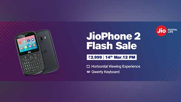 ஜியோ போன் 2 இன் க்யூவெர்ட்டி கீபேட், டூயல் சிம் கார்டு ஆதரவு, பெரிய திரை அனைவரையும் கவர்ந்துள்ளது. இந்த ஜியோ போன் 2 இன் முந்தைய விற்பனைகள் அமோகமாக இருந்ததைத் தொடர்ந்து, இன்று பிளாஷ் சேல் விற்பனை துவங்கவுள்ளது. இதற்கு முன்பு நடத்தப்பட்ட விற்பனையில் ஏராளமான ஜியோ போன்கள் விற்பனை துவங்கிய சிறிது நேரத்திலேயே விற்று முடிந்தது என்பது குறிப்பிடத்தக்கது.