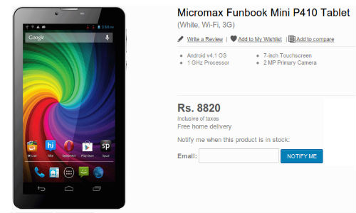 இந்த டேப்லெட்டின் விலை ரூ.8,820 ஆகும். கீழே உள்ள சிலைட்சோவில் மைக்கிரோமேக்ஸ் பன்புக் மினி P410 டேப்லெட் படங்களை பார்ப்போம்.