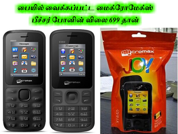 பையில் வைக்கப்பட்ட மைக்ரோமேக்ஸ் பீச்சர் போனின் விலை 699 தான்