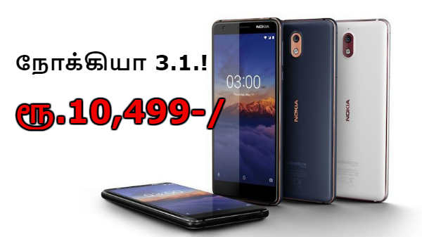 எச்எம்டி குளோபல் நிறுவனம் சத்தமில்லமால் இந்திய சந்தையில் நோக்கியா 3.1 ஸ்மார்ட்போன் மாடலை விற்பனைக்கு கொண்டுவந்துள்ளது, குறிப்பாக இந்த ஸ்மார்ட்போன் மாடல் கருப்பு, நீலம், வெள்ளை போன்ற நிறங்களில் கிடைக்கும் என்று தெரிவிக்கப்பட்டுள்ளது. மேலும் ஐடியா மற்றும் வோடபோன் நிறுவனங்கள் இந்த ஸ்மார்ட்போனை வாங்கும் வாடிக்கையாளர்களுக்கு சிறப்பு சலுகையை அறிவித்துள்ளது.