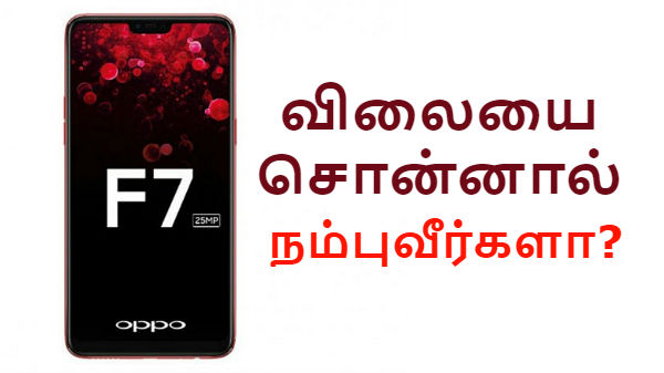 இந்த புதிய ஸ்மார்ட்போன் ஆனது ஏற்கனவே இந்திய சந்தையில் வாங்க கிடைக்கும் விவோ வி9, மோட்டோ எக்ஸ் 4, மற்றும் ஹானர் 8 ப்ரோ ஆகியவற்றிற்கு எதிராக போட்டியிடும் என்பதில் சந்தேகமே வேண்டாம். இந்திய விலை நிர்ணயத்தை பொறுத்தமட்டில், ஒப்போ எப்7 கருவியின் 4 ஜிபி ரேம் மற்றும் 64 ஜிபி அளவிலான உள்ளடக்க சேமிப்பு மாதிரியானது ரூ.21,990/-க்கு வாங்க கிடைக்கும். வருகிற ஏப்ரல் 7-ஆம் தேதி முதல் - சோலார் ரெட் மற்றும் மூன்லைட் சில்வர் ஆகுல இரண்டு நிற வகைகளில் - ஆன்லைன் மற்றும் ஆஃப்லைன் கடைகளில் வாங்குவதற்கு கிடைக்கும்.