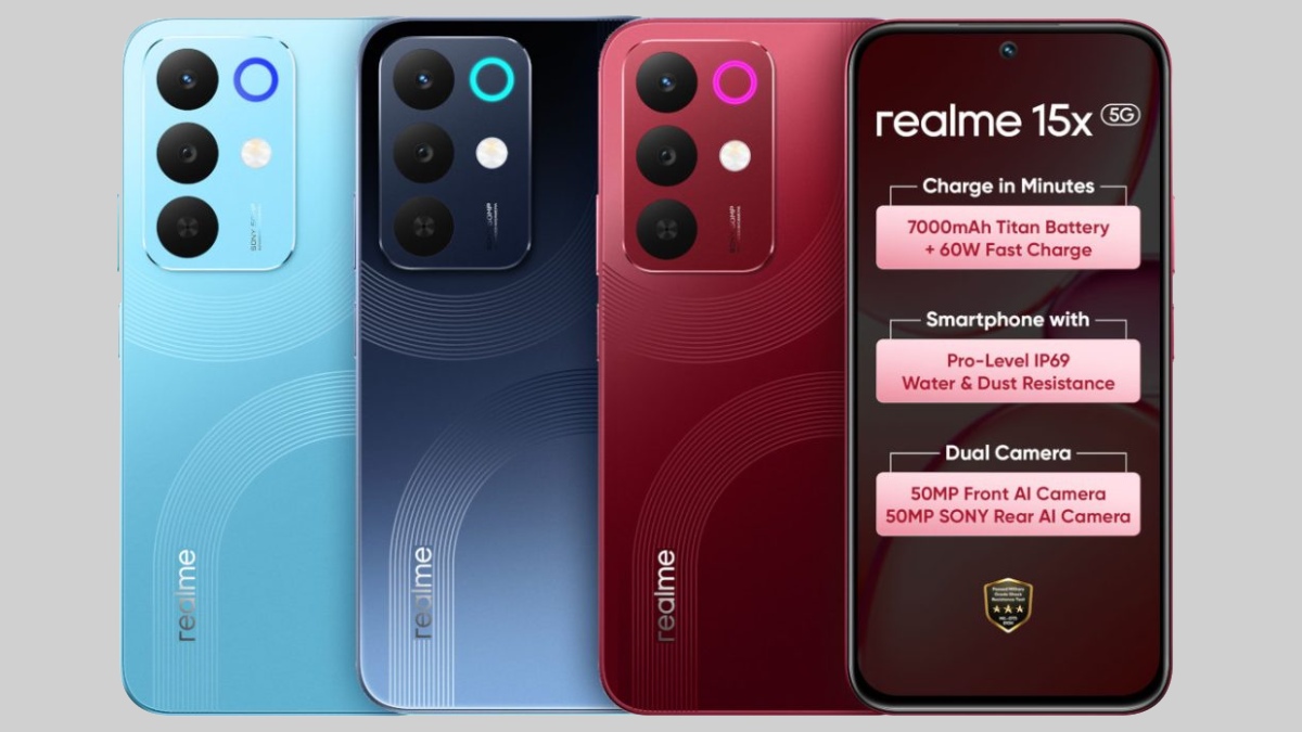 ரியல்மி நிறுவனம் தனது புதிய ரியல்மி 15எக்ஸ் 5ஜி (Realme 15x 5G) ஸ்மார்ட்போனை இன்று (அக்டோபர் 1) இந்தியாவில் அறிமுகம் செய்துள்ளது. 7000எம்ஏஎச் பேட்டரி, ஐபி69 ரேட்டிங், ஆண்ட்ராய்டு 15 ஓஎஸ் உள்ளிட்ட பல சிறப்பான அம்சங்களுடன் இந்த ரியல்மி ஸ்மார்ட்போன் வெளிவந்துள்ளது. இப்போது புதிய ரியல்மி ஸ்மார்ட்போனின் விலை மற்றும் அம்சங்களைப் பார்க்கலாம்.
