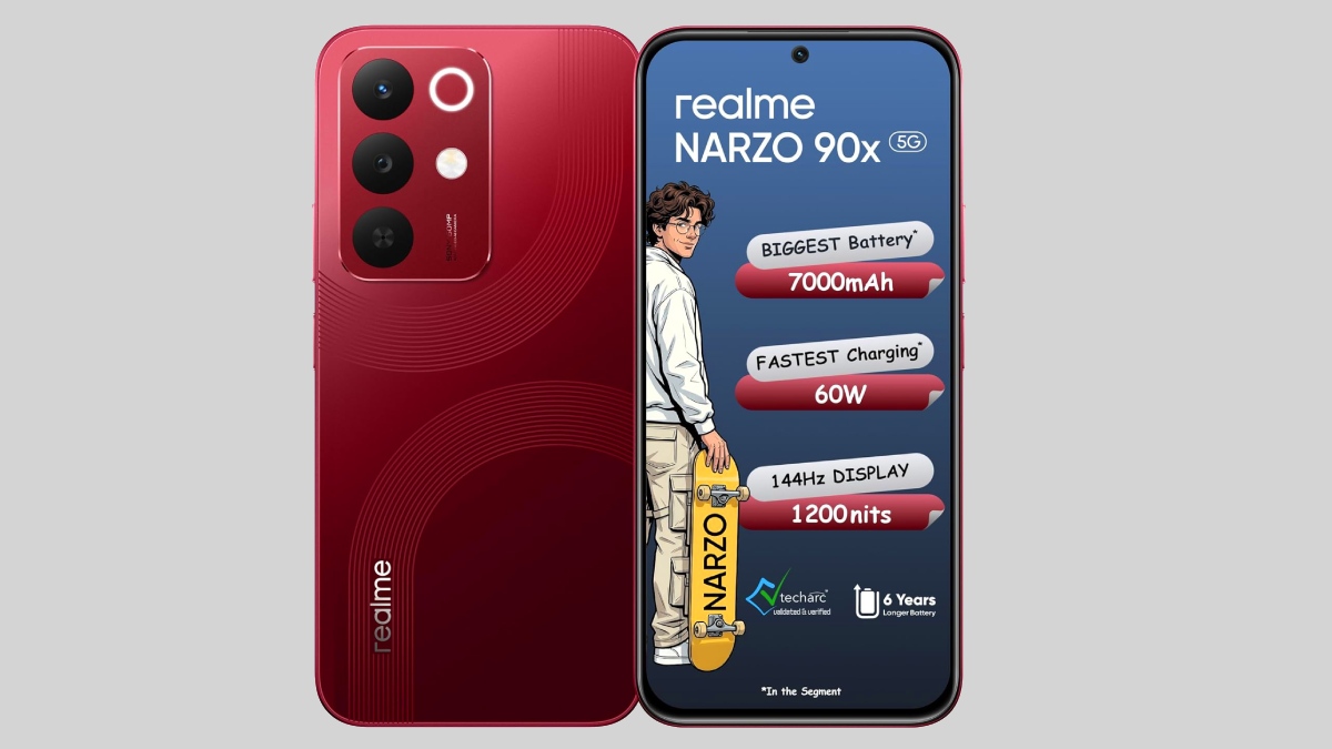 இன்று வேலன்டைன்ஸ் ஸ்பெஷல் மெரூன் (Valentine's Special Maroon) நிறத்தில் ரியல்மி நார்சோ 90எக்ஸ் 5ஜி (Realme Narzo 90x 5G) மாடலை விற்பனைக்கு கொண்டுவந்துள்ளது ரியல்மி நிறுவனம். அமேசான் தளத்தில் இந்த போனை தற்போது வாங்க முடியும். இந்த புதிய மாடலின் விலை மற்றும் அம்சங்களை இப்போது சற்று விரிவாகப் பார்க்கலாம்.