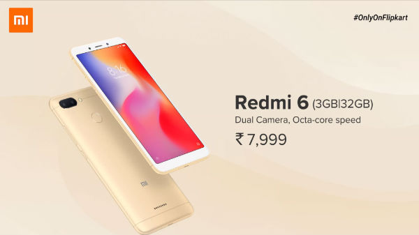 சியோமி ரெட்மி 6 இன் 3 ஜிபி ரேம் மற்றும் 32 ஜிபி உள்ளதா சேமிப்பு கொண்ட துவக்க வேரியண்ட் இன் ஆரம்ப விலை வெறும் ரூ. 7,999 என நிர்ணயம் செய்யப்பட்டு இன்று பிளிப்கார்ட் மற்றும் மி ஸ்டோர் இல் விற்பனைக்குக் கிடைக்கிறது. இந்த பிளாஷ் சேல் விற்பனையின் துவக்கமாக சியோமி நிறுவனம் மற்றும் பிளிப்கார்ட் நிறுவனம் பல சலுகைகளை வழங்கி இறுக்குகிறது. ஆக்ஸிஸ் வங்கி வாடிக்கையாளர்களுக்கு ரூ.1,000 உடனடி சலுகை உடன் கிரெடிட் கார்டு பரிவர்த்தனைக்குக் கூடுதல் 5% சலுகையும் வழங்கப்படுகிறது. இத்துடன் மாதம் வெறும் ரூ.899 என்ற வட்டி இல்லா தவணை முறையில் புதிய ரெட்மி 6 ஸ்மார்ட்போன்கள் விற்பமி செய்யப்படுகிறது.