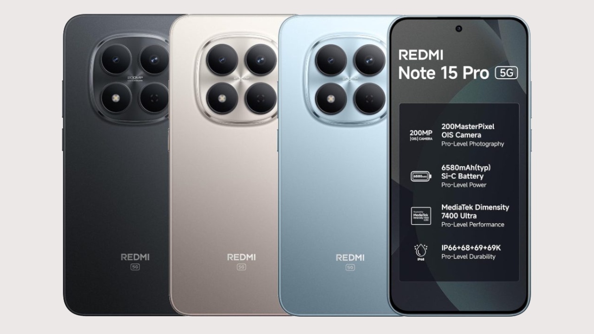 ரெட்மி நோட் 15 ப்ரோ 5ஜி விலை: 8ஜிபி ரேம் மற்றும் 128ஜிபி மெமரி கொண்ட ரெட்மி நோட் 15 ப்ரோ 5ஜி ஸ்மார்ட்போனின் விலை ரூ.29,999-ஆக உள்ளது. பிப்ரவரி 3 முதல் அமேசான், எம்ஐ.காம் போன்ற தளங்களில் இந்த போனை வாங்க முடியும். தேர்வு செய்யப்பட்ட வங்கி கார்டுகளை பயன்படுத்தி இந்த போனை வாங்கினால் ரூ.3000 தள்ளுபடியும் உள்ளது.