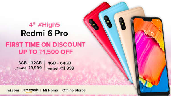 3ஜிபி ரேம் கொண்ட சியோமி ரெட்மி 6 ப்ரோ ஸ்மார்ட்போனின் முந்தைய விலை ரூ.11,499-ஆக இருந்தது, தற்சமயம் விலைகுறைக்கப்பட்டு ரூ.9,999-விலையில் விற்பனை செய்யப்படுகிறது.