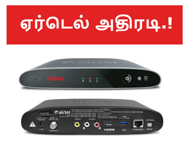 அதாவது, வருடத்திற்கு ரூ.4,999/- ஏர்டெல் இண்டர்நெட் டிவி செட்-டாப் பாக்ஸை அறிமுகம் செய்துள்ளது. இந்த அறிமுகம் விரைவில் நிகழலாம் என்று எதிர்பார்க்கப்படும் ஜியோ செட் ஆப் பாக்ஸ் சேவைக்கு எதிராக ஏர்டெல் நிகழ்த்தும் முன்னெச்சரிக்கை நடவடிக்கை என்பதில் சந்தகேமே வேண்டாம்.!