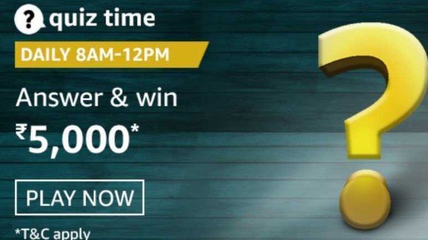 கீழே அமேசான் தளத்தில் இருக்கும் கேள்விக்கான பதில்கள் வழங்கப்பட்டுள்ளது. இந்த ஐந்து கேள்விகளுக்கும் பதில் அளித்து வெற்றி பெறும் வாடிக்கையாளர்களுக்கு ரூ.5000 அமேசான் பே பேலன்ஸ் பரிசாக வழங்கப்படுகிறது.