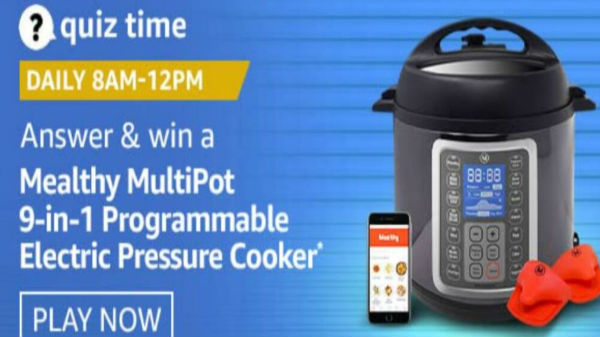 மேலும் இன்றைய இந்த வினாடி வினா போட்டியின் பரிசாக Mealthy Pressure Cooker அறிவிக்கப்பட்டுள்ளது. அமேசானின் இந்த தினசரி வினாடி வினா காலை 8 மணிக்கு தொடங்கி மதியம் 12 மணி வரை தொடரும் என்பது குறிப்பிடத்தக்கது.
