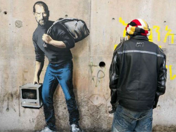 கிராஃபிட்டி (graffiti) எனப்படும் சுவரெழுத்து கலைஞர் ஒருவர் பிரான்ஸ் நாட்டில் உள்ள கலைஸ் (Calais) என்ற நகரில் மறைந்த ஆப்பிள் நிறுவனர் ஸ்டீவ் ஜாப்ஸ் நினைவாக ஜங்கிள் அகதிகள் முகாம் (Jungle refugee camp) என்ற பெயரில் புதிய கலைப்படைப்பு ஒன்றை சமீபத்தில் நிகழ்த்தியுள்ளார்.