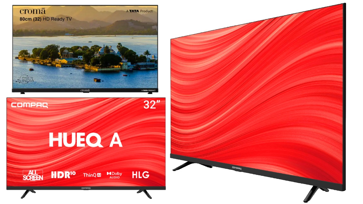 1. குரோமா CREL032HBD307601 32' இன்ச் எச்டி ரெடி LED பேசல்லெஸ் டிவி 2023 மாடல் (Croma CREL032HBD307601 32 inch HD Ready LED TV with Bezel Less Display 2023 model):