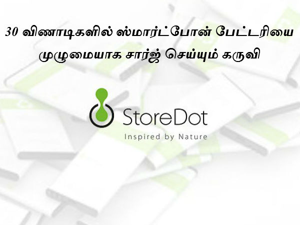 அமெரிக்காவில் நடைபெறும் மின்சாதன விழாவில் அனைவரையும் திரும்பி பார்க்க வைத்த தொழில்நுட்பம் பற்றி உங்களுக்கு தெரியுமா, ஸ்டோர்டாட் என்ற இஸ்ரேல் நிறுவனத்தின் இந்த கருவியை கொண்ட ஸ்மார்ட்போன் பேட்டரிகளை 30 விணாடிகளில் சார்ஜ் செய்ய முடியும் என்றால் நம்ப முடிகிறதா.