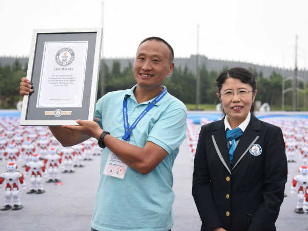 சுமார் 1007 சிவப்பு மற்றும் வெள்ளை நிற ரோபோட்கள் ஒரே நேரத்தி் நடனமாடியது சீனாவிற்கு புதிய கின்னஸ் சாதனையை பெற்றுத் தந்திருக்கின்றது. ஒரே மாதிரி காட்சியளிக்கும் இந்த ரோபோட்கள் QRC-2 ZV என அழைக்கப்படுகின்றது.