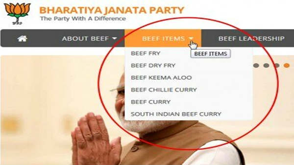 இணையதளம் முழுவதும் மாட்டிறைச்சி புகைப்படத்தால் ஹேர்கள் நிரப்பியுள்ளனர். பாஜவுக்கு மாட்டிறைச்சி கட்சி, மாட்டிறைச்சி வரலாறு என்று அனைத்து தகவல்களையும் மாற்றியுள்ளனர்.