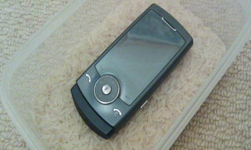 தண்ணிரில் விழுந்த மொபைலை ஆன் செய்யாமல் பேட்டரியை கழற்றி, நம் வீட்டில் இருக்கும் உலர்ந்த அரிசியின் மீது வையுங்கள்.