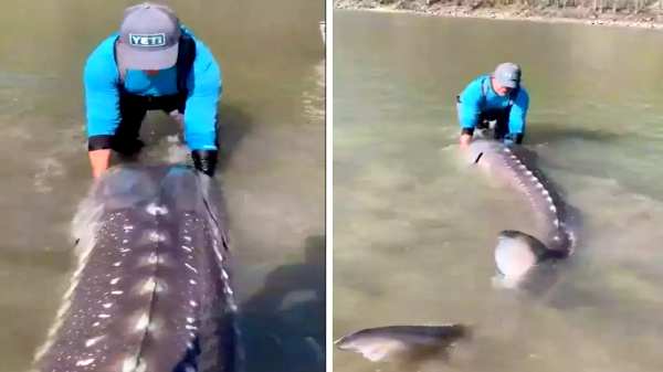 இவர் பிடித்த இந்த மீனின் பெயர் ஸ்டர்ஜன் ஆகும். அந்த மீனவர் தன்னை தானே 'ஸ்டர்ஜன் வழிகாட்டி' என்று அழைத்துக் கொள்கிறார். இது தான் இதுவரை அவர் கண்டிராத மிகப்பெரிய ஸ்டர்ஜன் வகை மீன்களில் ஒன்றாகும் என்றும் அவர் அந்த வீடியோவில் கூறியுள்ளார். காணொளியில், பாரிய நன்னீர் மீனின் தலையை கடலை நோக்கி வழிநடத்த மீனவர் போராடுவதை நாம் காண முடிகிறது. மேலும் வீடியோவில் அவர், "இதைப் பாருங்கள், இந்த மீன் 10.5 அடி நீளமும், அநேகமாக 500 அல்லது 600 பவுண்டுகள் எடை இருக்கும்" என்று கூறுவதை நாம் கேட்க முடிகிறது.