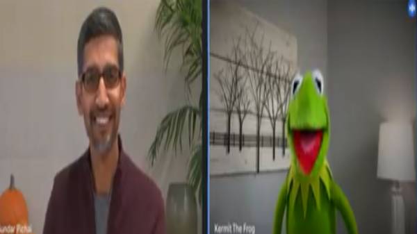 செசேம் ஸ்ட்ரீட் போன்ற குழந்தைகளுக்கான அமெரிக்க தொலைக்காட்சி நிகழ்ச்சிகளில் பலமுறை தோன்றிய மப்பட் கதாபாத்திரத்துடன் சுந்தர் பிச்சை பேசினார். இரண்டு நிமிடங்கள் மற்றும் 19 வினாடி வீடியோவில் பிச்சை மற்றும் கெர்மிட் கலந்து கொண்டு பேசுகின்றனர். பலருடன் வீடியோகால் மேற்கொள்ளும் கூகுள் சிஇஓ சுந்தர் பிச்சை மியூட் எடுக்க மறந்துவிட்டாரா என்ற கேள்வி ஆச்சரியத்தை அளிக்கும் விதமாக இருந்தாலும் அவரும் மனிதார் தானே எனவும் இதுபோன்ற பிழைகள் தவறுகள் நடக்கத்தான் செய்யும் என தெரிவிக்கப்பட்டு வருகிறது.