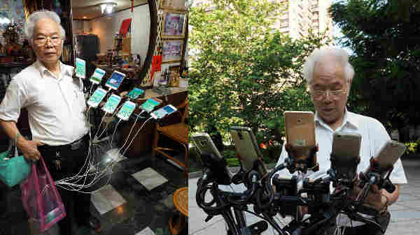 தைவான் நாட்டைச் சேர்ந்த முதியவர் ஒருவர் தனது சைக்கிள் இல் 11 ஸ்மார்ட்போன்னுடன் தினமும் 20 மணி நேரம் தொடர் வேட்டைக்குச் செல்கிறார்.
