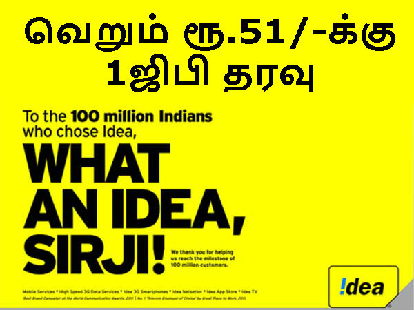 ஆண்டுமுழுவதும் வெறும் ரூ.51/-க்கு 1ஜிபி தரவு வழங்கும் ஐடியா.!