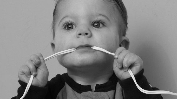சார்ஜ்ர் பின்னை வாயில் வைத்த குழந்தை