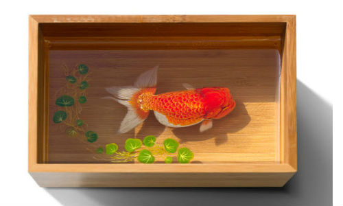 இதில் கோல்டு ரெஸின் மற்றும் அக்ரிலிக் பெயிண்ட் பயன்படுத்தப்பட்டுள்ளது.