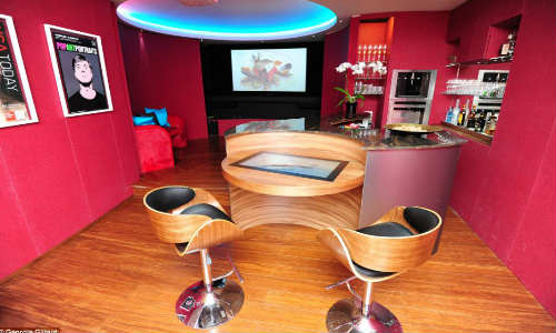 இதில் தண்டர்பேர்டு ஸ்டைல் பார் உள்ளது. இதில் உள்ள சுழலும் தரை , டெலிவிஷன் சுவரை ஐபேட் மூலம் இயக்கலாம்.