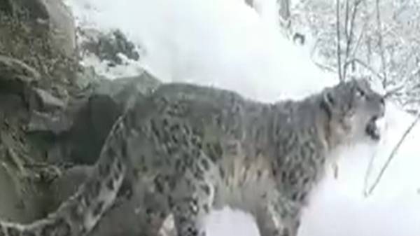 பனிச்சிறுத்தை உறுமும் காட்சி