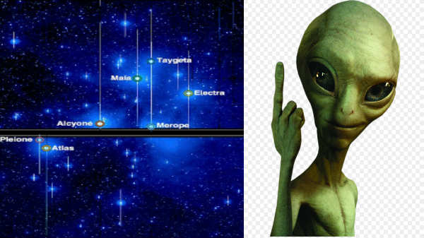 பிளையடீஸ் எனப்படும் கார்த்திகை நட்சத்திரத்தில் ஏலியன் (வேற்றுகிரக வாசிகள்) வாழ்கின்றனர். அவர்கள் பூமியில் நிலவும் பல்வேறு பிரச்னைகளையும் தீர்வு கண்டு வருவதாக கூறப்படுகின்றது. அந்த ஏலியன்கள் பேசு