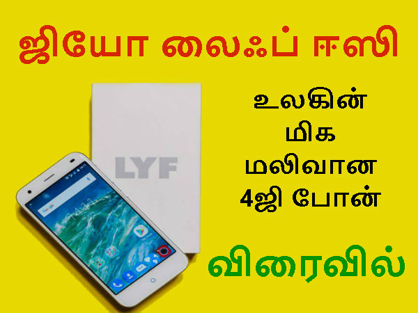 லைஃப் ஈஸி என்ற உருவாகலாம் என்று எதிர்பார்க்கப்படும் இக்கருவி உலகின் மிக மலிவான 4ஜி போனாக இருக்கும் அதாவது இதன் விலை ரூ.1000/- இருக்கும் என்கிறது வெளியான அறிக்கை ஒன்று.