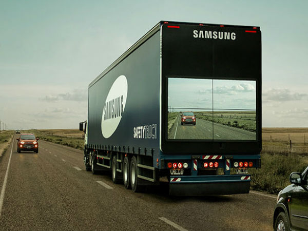 சாம்சங் நிறுவனத்தின் 'சேஃப்டி ட்ரக்'கின் முன்புறம் பொருத்தப்பட்டுள்ள வயர்லெஸ் கேமிராவானது தனக்கு முன்னால் இருக்கும் சாலையை படம் பிடித்து அப்பிடியே 'லைவ்'வாக சேஃப்டி ட்ரக்கின் பின்புறம் பொருத்தப்பட்டு உள்ள பெரிய ஸ்க்ரீனில் காட்சிப்படுத்தும்.