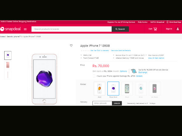 ஸ்னாப்டீல் தளத்தில் அமெக்ஸ் கார்டு மூலம் ஐபோன் 7 மற்றும் ஐபோன் 7 பிளஸ் கருவிகளை வாங்கும் பயனர்களுக்கு இந்த விலை குறைப்பு பிரத்தியேக சலுகை என்றே கூற வேண்டும்.