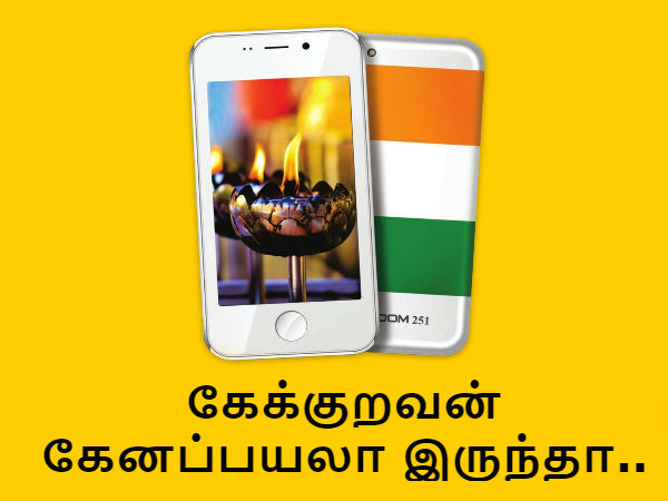 இந்த 2016-ஆம் ஆண்டு நமக்கெல்லாம் மிகப்பெரிய 'பல்ப்'கொடுத்து, இல்லாத பொல்லாத பேய் கதைகளை அள்ளிவிட்டு கிட்டத்தட்ட நம் அனைவரையுமே கேப்பையில் நெய் வடிகிறது என்று கூறி கேனைகளாக்கிய ப்ரீடம் 251 ஸ்மார்ட்போன் பற்றிய தொகுப்பே இது.!