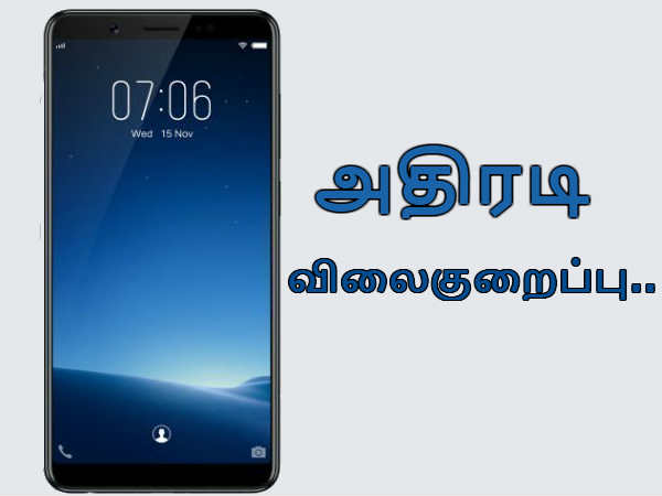 விவோ நிறுவனம் தற்சமயம் அதிரடி விலைகுறைப்பை அறிவித்துள்ளது, அதன்படி விவோ வி7 ஸ்மார்ட்போனுக்கு விலை குறைக்கப்பட்டுள்ளது.மேலும் இந்த சலுகையை பல்வேறு மக்கள் பயன்படுத்துவார்கள் என எதிர்பார்க்கப்படுகிறது.