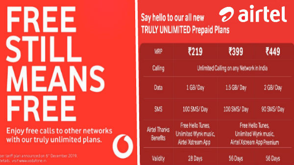 ஏர்டெல்லின் அதிரடி அறிவிப்பைத் தொடர்ந்து எதிர்பார்த்தது போல் வோடபோன்-ஐடியா நிறுவனமும் தற்பொழுது தனது ப்ரீபெய்ட் பயனர்களுக்கான வரம்பற்ற குரல் அழைப்பு சேவையை இலவசமாக்கியுள்ளது. இதன்படி இன்று முதல் வோடபோன்-ஐடியா பயனர்களுக்கு எந்தவித கட்டணமும் வாய்ஸ் கால்களுக்காக வசூலிக்கப்படமாட்டாது என்று அறிவிக்கப்பட்டுள்ளது.