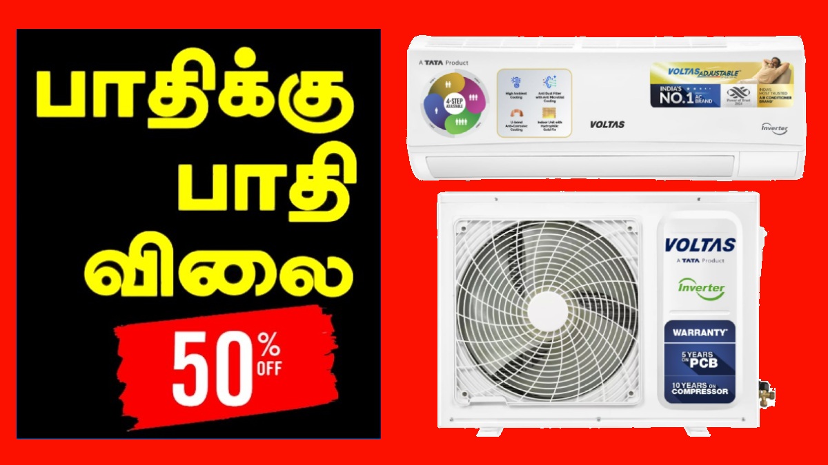 ஆனால், யாரும் எதிர்பார்த்திடாத வகையில் வோல்டஸ் (Voltas) நிறுவனம் அபார தள்ளுபடியை அறிவித்துள்ளது. இதுவரை எந்தவொரு ஏசி பிராண்டும் (AC brands) வழங்காத சலுகையை வோல்டஸ் (Voltas) நிறுவனம் இப்போது வழங்கியுள்ளது. வோல்டஸ் பிராண்டின் வோல்டஸ் 1.5 டன் 3 ஸ்டார் இன்வெர்டர் ஸ்ப்ளிட் ஏசி (Voltas 1.5 ton 3 Star, Inverter Split AC) மாடல் மீது தான் டாடா (TATA) நிறுவனம் இப்போது நேரடியாக 50% தள்ளுபடியை வழங்கியுள்ளது.