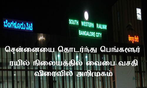 சென்னையை தொடர்ந்து பெங்களூர் ரயில் நிலையத்துக்கும் வைவை வசதி வருகிறது